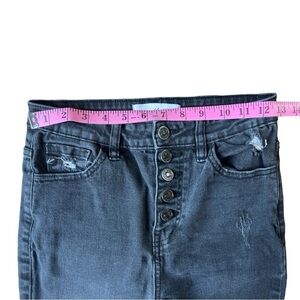 KanCan Women’s Washed Black Button Fly High Rise Skinny Freyed Ankle Jeans 5/26