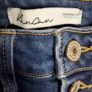 KanCan exclusively for Maurices high-rise skinny jeans, women’s size 25. Medium blue wash with fading and distressed details. Double button closure with zip fly. Stretch denim blend (92.9% cotton, 5.5% polyester, 1.6% spandex). Made in China.