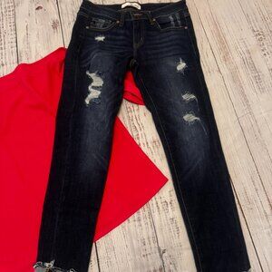 KanCan low rise ankle skinny jeans sz 5/26 distressed dark KC6050LD