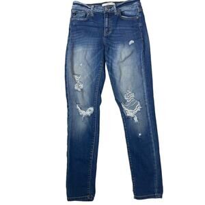 KanCan medium wash medium rise factory distressed straight leg jeans SZ 7 (27")