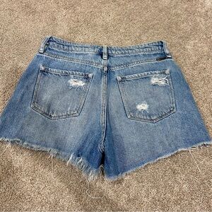 Stylish distressed denim shorts in a classic blue shade. Perfect for casual outings and summer days.
