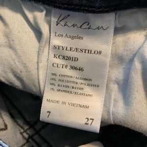 Great condition pair of women’s KanCan distressed jeans. Size 7/27. 70% cotton 19% polyester 10% rayon 2% spandex. These have FACTORY distressed markings/holes throughout the jeans.