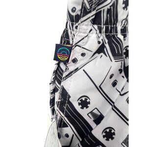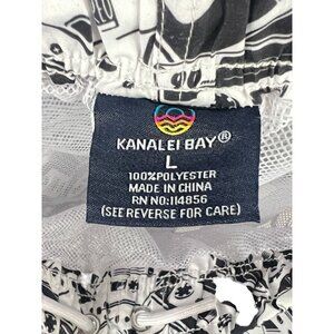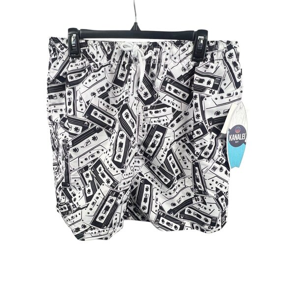 Kanalei Bay NWT Cassette Print Mens Swim Shorts L Black White Lined Beach Summer