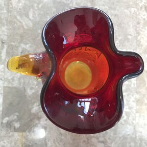 Kanawha Amberina American Eagle Pitcher. 6 tall, 4 1/2wide with handle. Top is ruffled shape.