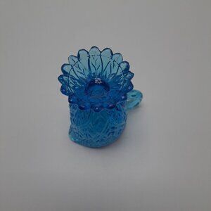 Kanawha Blue Pressed Glass Miniature Pitcher Toothpick Holder Decorative Accent