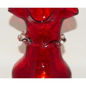Kanawha Ruby Red Crackle Blown Glass Vase Applied Clear Rigaree Scroll
