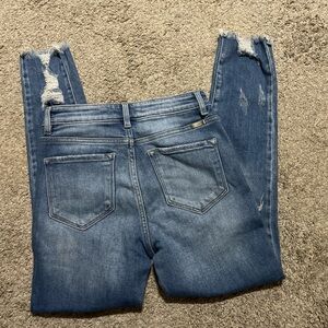 Stylish distressed blue jeans perfect for a casual look. Comfortable and trendy, these jeans are a must-have for your wardrobe. High rise high stretch distressed were my absolute FAVORITE before I had my son!