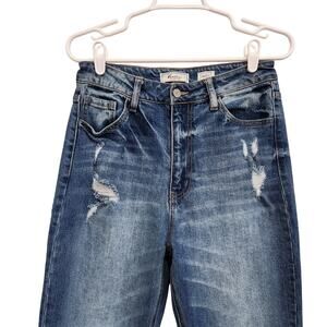 Kancan Baggy Fit Stretch Jeans High Rise Lightly Distressed Denim Blue Size 27