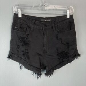 Kancan Black Distressed Destroyed Ripped Denim Raw Hem Jean Shorts Size 27
