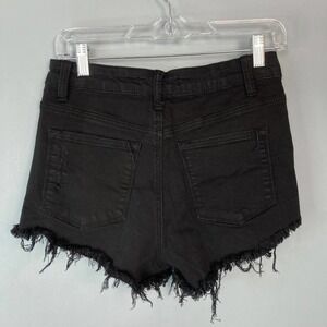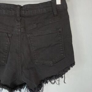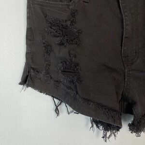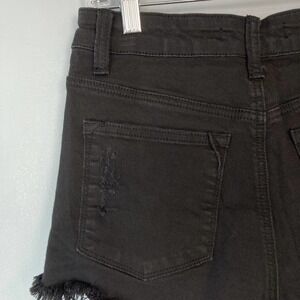 Kancan Black Distressed Destroyed Ripped Denim Raw Hem Jean Shorts Size 27