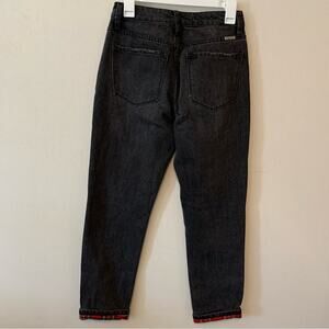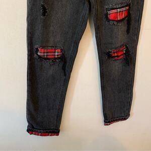 Kancan Black Plaid Patch Distressed High Rise Slim Straight Jeans