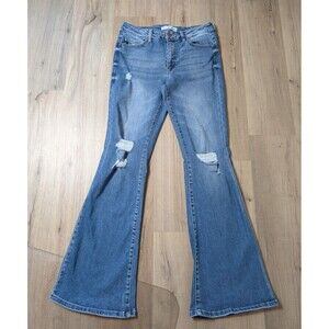 Kancan Blue Jeans Size 29X32 Flare High Rise Distressed Stretch