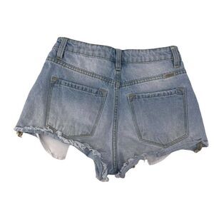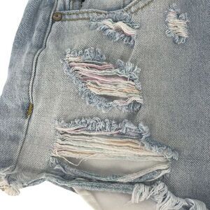 Kancan Blue Jean Shorts Distressed Rainbow Threading Size XS Light Wash Cut Offs
