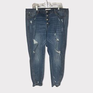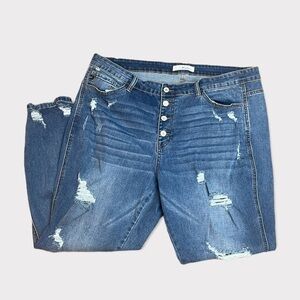 Kancan Button Fly High Rise Skinny, Distressed, Medium Wash, KC4109M-B, 3XL, 20W