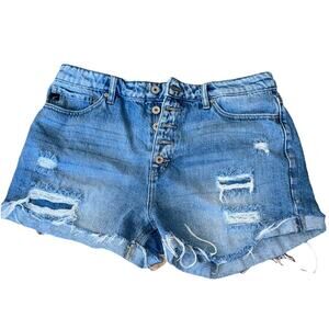 Kancan Button Fly Jean Shorts Distressed High Rise Women’s Size 11/29