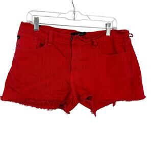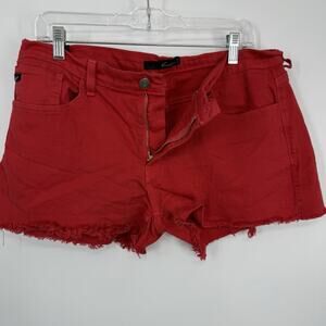 Kancan Cut Off Jean Shorts Women Size 31 Red Denim Mid Rise 2.5 Inseam