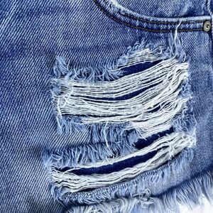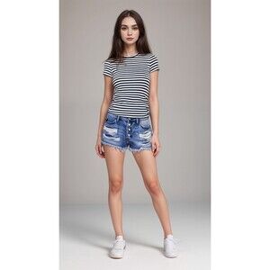 Kancan Denim Shorts Women Sz XS Cut-Off Distressed Exposed Button Fly