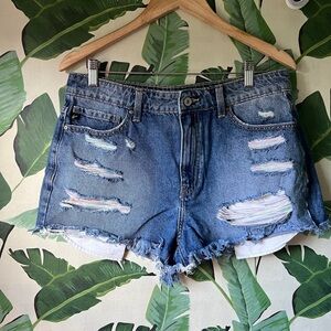 Excellent condition. Not stretchy. Waist measures apx 16 inches across front. Rise measures apx 11 inches. Inseam measures apx 2.5 inches.