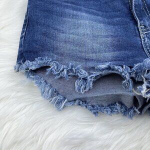 Kancan Distressed Denim Jean Cut Off Booty Shorts Fringe Size 9/28 KC6033M Blue