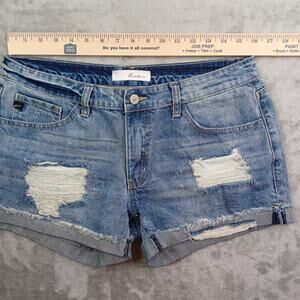Kancan Distressed Denim Jean Shorts Women's Large W28 Blue Cuffed Mid KC5142YT