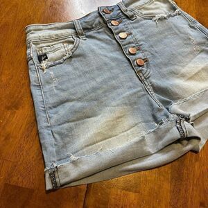 Kancan Distressed High Rise Stretch Button Fly Jean Shorts Cuffed size small