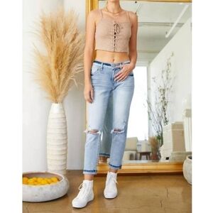 Kancan | EUC Amie Boyfriend Jeans Cuffed High Rise Light Wash Size 7 / 27