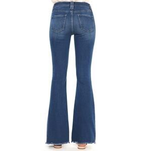 Kancan Essentials Brenda High Rise Flared Bootcut Frayed Hem Dark Wash Jean 25
