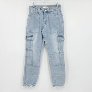 Kancan Estilo Cargo Jeans Cropped Raw Hem Light Wash Utility Womens Size 24