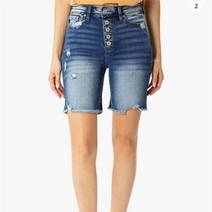 Kancan Estilo Distressed Button Fly Bermuda Denim Shorts