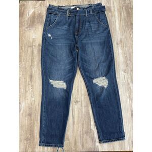 Kancan Estilo PaperBag Mom Jeans Ultra High Rise Belted Distressed Juniors Sz 15