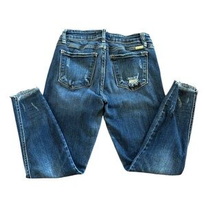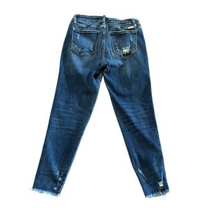Kancan Estilo Skinny Medium Wash Distressed Denim Jeans Size 29. Excellent condition. Slight distressing, raw hem.