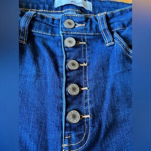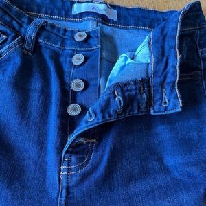 KanCan Frederick High Rise Exposed Button Fly Jeans, size 28. They have.a raw hem and 5 pockets, Style #KC7273D The flat lay measures are 27” inseam and an 8”. These are in very good condition.