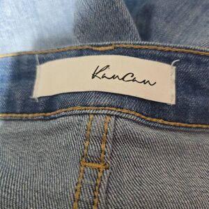 Details: some stretch, medium wash, rolled hems, zip fly, high waisted, front and backpockets