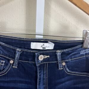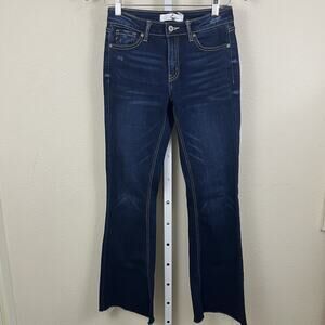 Kancan Heidi Midrise Flare Jeans Womens Size 26 Dark Wash Raw Hem