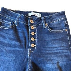 Kancan High RIse Button Fly Dark Wash Raw Hem Skinny Jeans 5/26