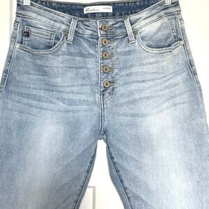 Kancan High Rise Button Fly Raw Hem Cropped Straight Jeans Size 28