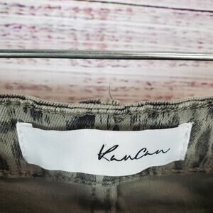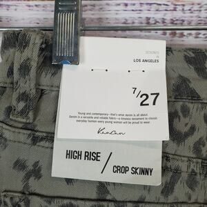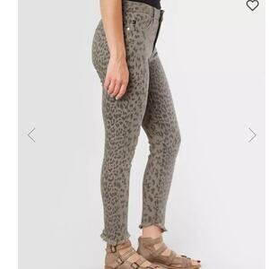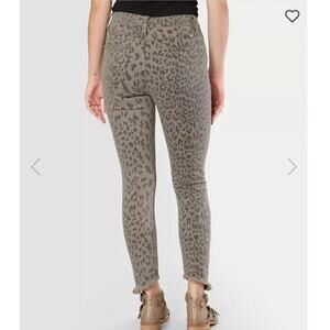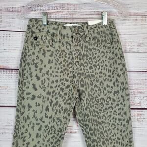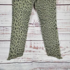 Kancan High Rise Crop Skinny Jeans Leopard Army Green Fringe Hem Size 27 NWT