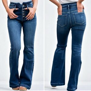 Kancan High Rise Curvy Dark Wash Button Fly Flare NWT