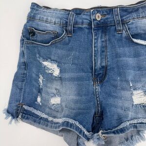 Kancan Jean Shorts Womens 7* Blue Denim Stretch Distressed Mid Rise Cut Off
