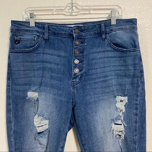 Kancan Jean Women’s Size 15/31 Medium Wash At Last Distressed Button Fly Jeans