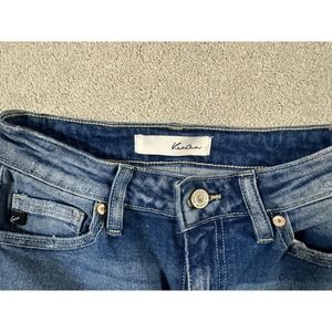 Get ready to elevate your denim game with these trendy Kancan Estilo jeans in a beautiful dark wash. The slim fit and straight style of these jeans are perfect for any occasion, while the distressed details and button front add a touch of edginess. Made with a comfortable stretch cotton blend, these jeans will become a staple in your wardrobe. With a 5-pocket design and belt loops, these jeans are both practical and stylish. Available in size 1/24, these jeans are perfect for the fashionable woman who wants to make a statement.