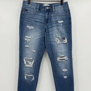 Style: Kancan Jeans Women 5 Blue Boyfriend Distressed Destroyed Denim Mid Rise