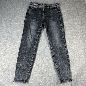 Kancan Jeans Womens 13/30 Acid Dark Wash Black Raw Hem Denim Stretch