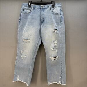 Kancan Jeans Women's 13/30 Light Blue Sierra High Rise Wide leg Distressing