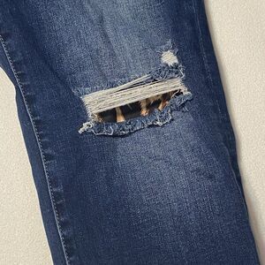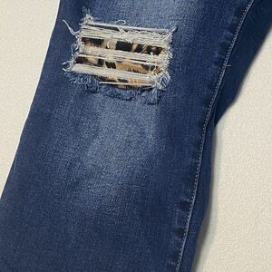 Kancan Jeans Womens 18 Blue Distressed Cheetah Leopard Patches