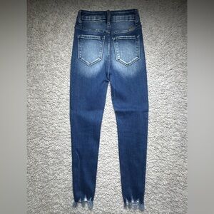 Kancan Jeans - Ultra High Rise - Ankle Skinny - Regular Wash - Exposed Button Fly - Denim - Raw Hem - Frayed Edge - Night Out - Party - Style VBK1678AA -