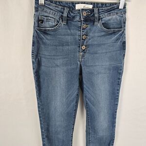 Kancan Jeans Women's 28 Blue Medium Wash Button Fly Rolled Raw Hem Cropped