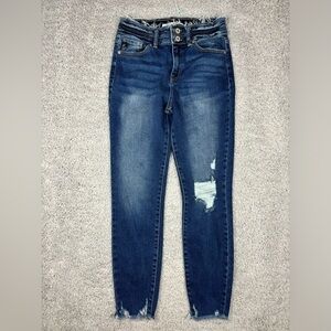 Kancan Jeans Womens 5 Gloria High Rise Ankle Skinny Dark Wash Distressed Holes