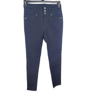 Kancan Jeans Womens 7/27 Skinny Leg High Rise Triple Button Dark Wash Casual Bot