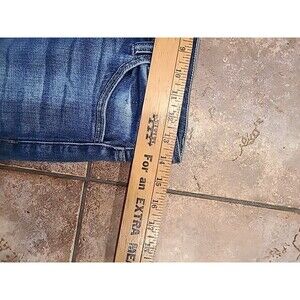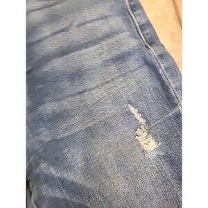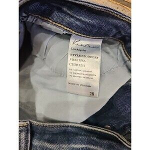 The product is a pair of KanCan women's size 28 skinny distressed cropped jeans in a blue color. These jeans are designed for a regular fit and feature a cropped style, making them a trendy and on-trend addition to any wardrobe. The distressed detailing adds a unique and edgy touch to the classic blue jeans, making them a versatile and stylish option for everyday wear.